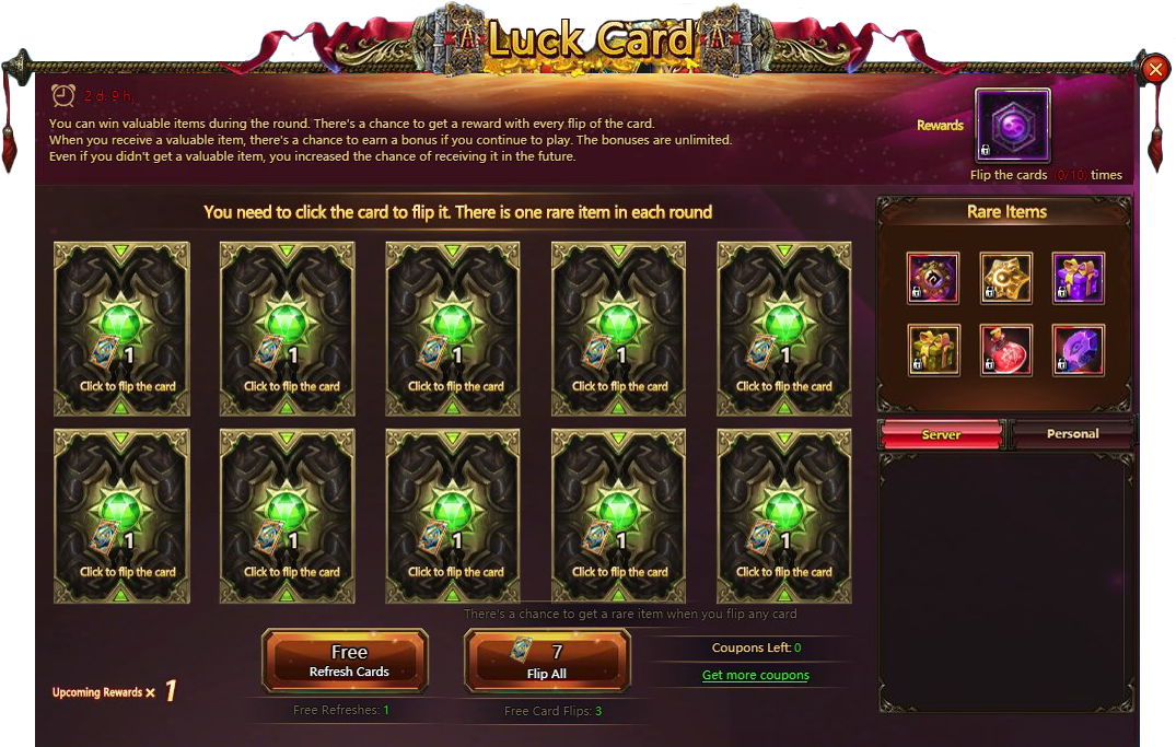 Luck Card - test your luck to win a broad variety of valuable trophies.