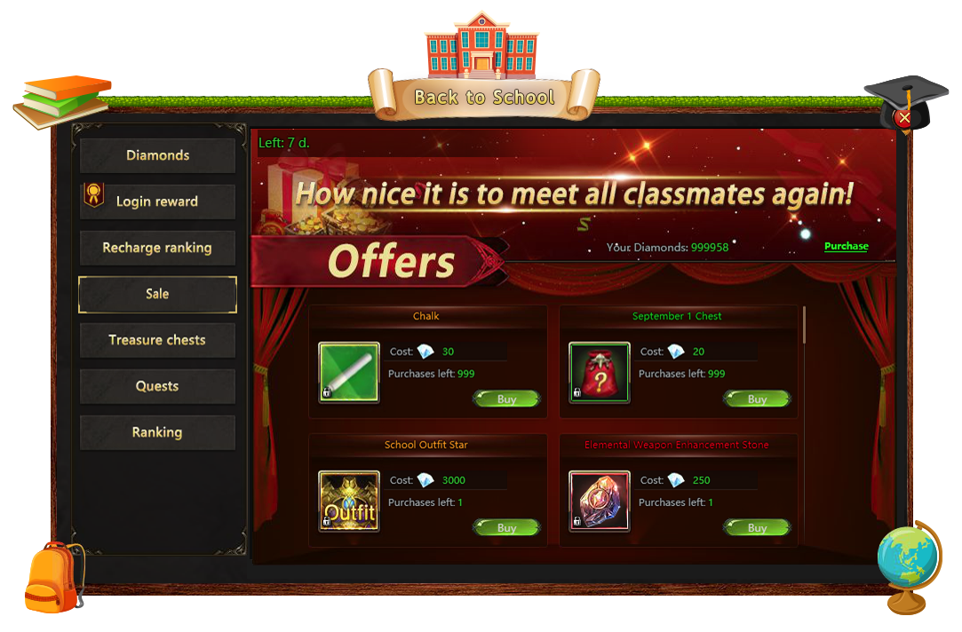 Heroes, do you remember that moment in your childhood, when after a bright summer you could not help but waited for meeting with all classmates, getting some A's and playing games in the yard? Quess what! This excitement before school days will return thanks to Rise of Angels: adventures, rewards and cool skins will be awaiting from 6am August 28 to 6am September 4. Get ready for the bell!
