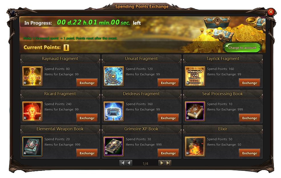 Spending Points Exchange - spend some diamonds and get goods for free.