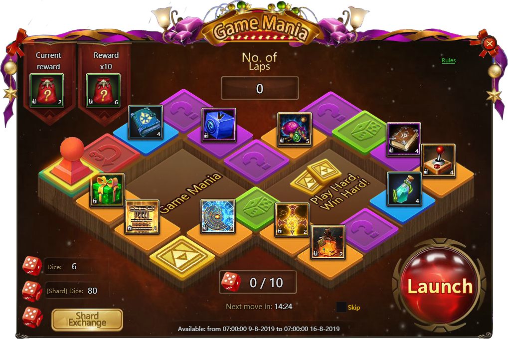 Your favorite Game Mania!  Love to role high? Here is the Game Mania. the event starts from 08.09.2019 08:00 (EST) till 08.16.2019 08:00