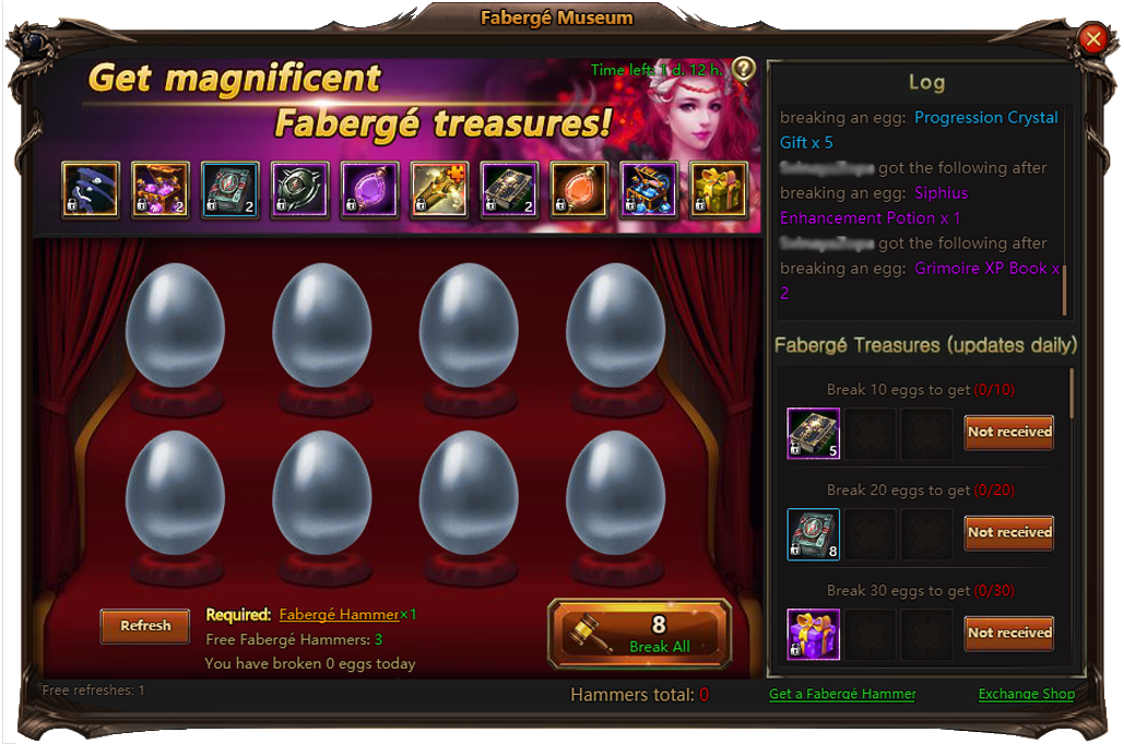 After each refresh you have a chance to find the Golden Egg, by cracking it you can gain the following items: