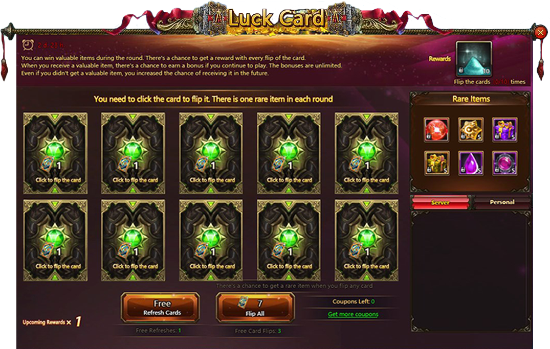 Luck Card - test your luck to win a broad variety of valuable trophies.