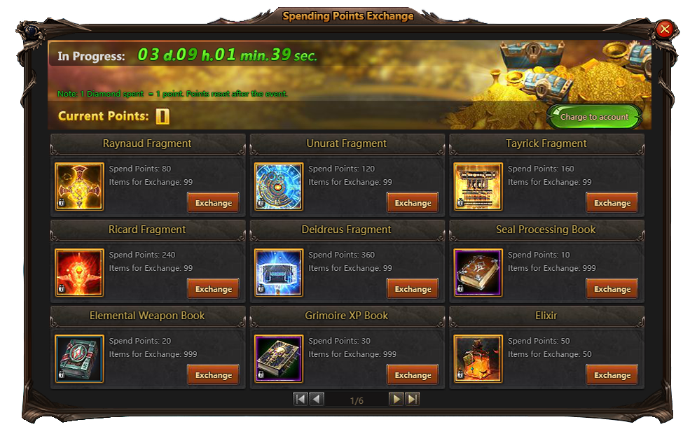 Spending Points Exchange - spend some diamonds and get goods for free.