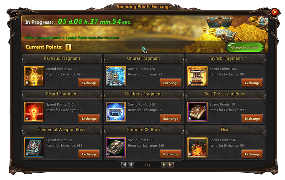 Spending Points Exchange - spend some diamonds and get goods for free.