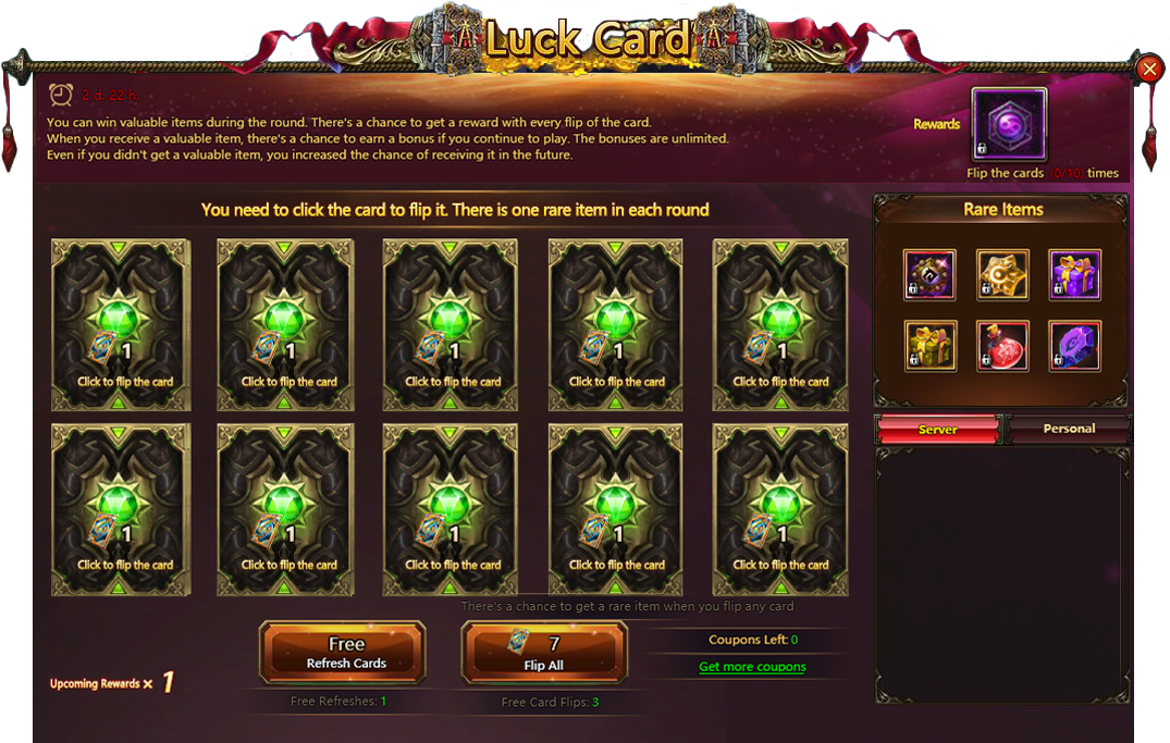 Luck Card - test your luck to win a broad variety of valuable trophies.