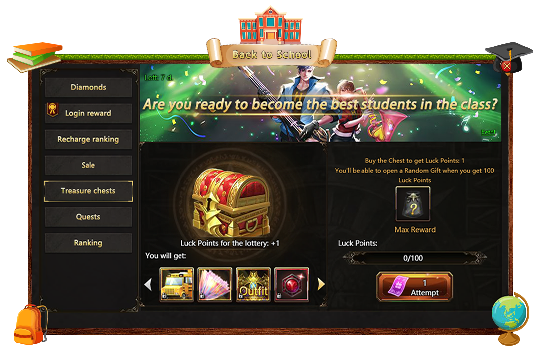 Heroes, do you remember that moment in your childhood, when after a bright summer you could not help but waited for meeting with all classmates, getting some A's and playing games in the yard? Quess what! This excitement before school days will return thanks to Rise of Angels: adventures, rewards and cool skins will be awaiting from 6am August 28 to 6am September 4. Get ready for the bell!