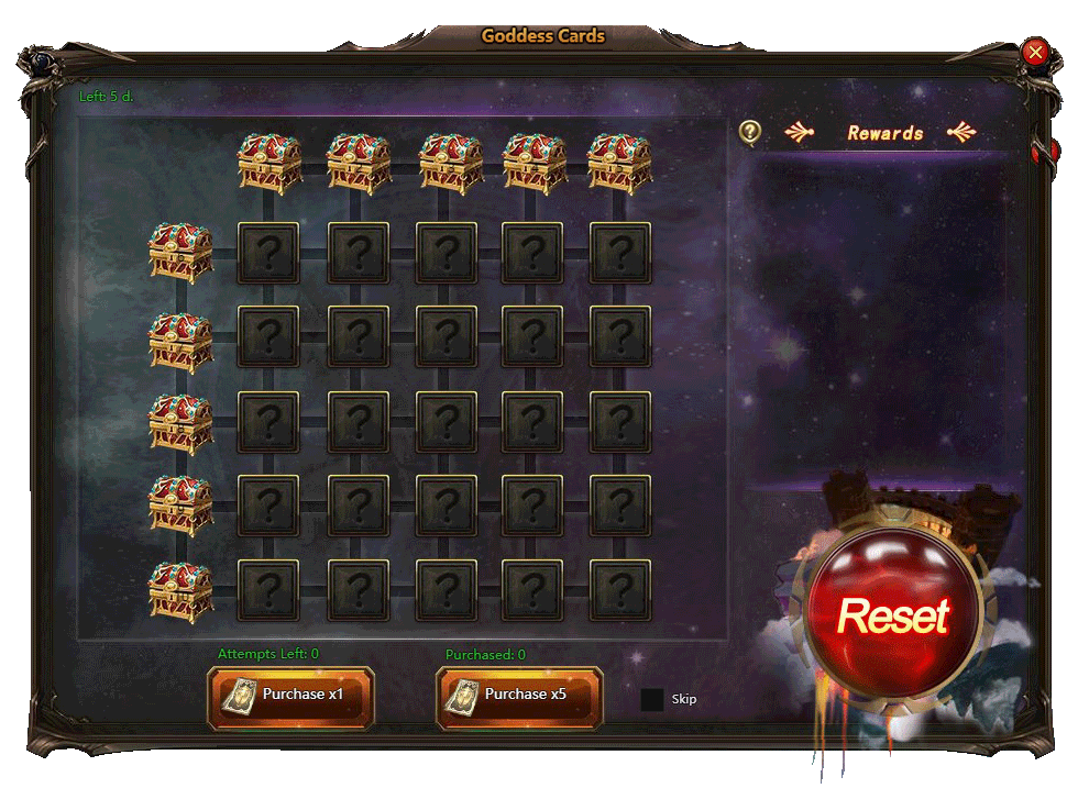 Goddess Cards - open up the mysterious cards and pave your way to the treasure chests.