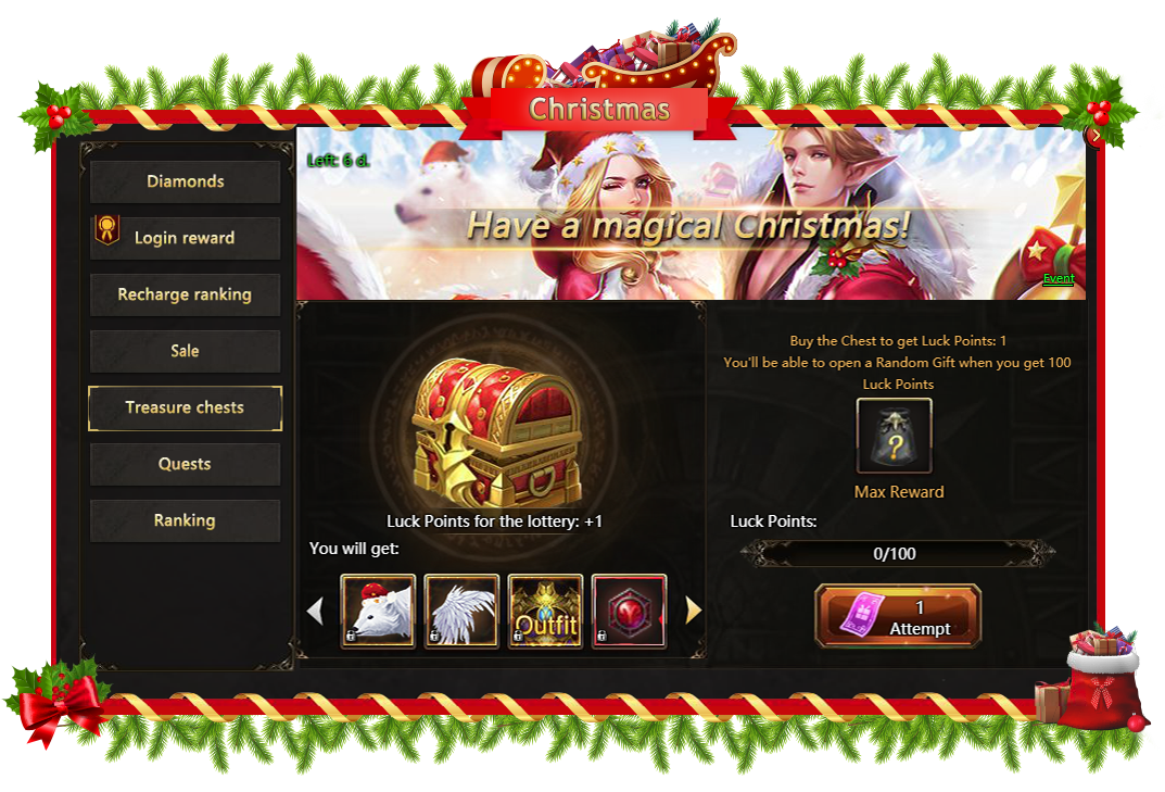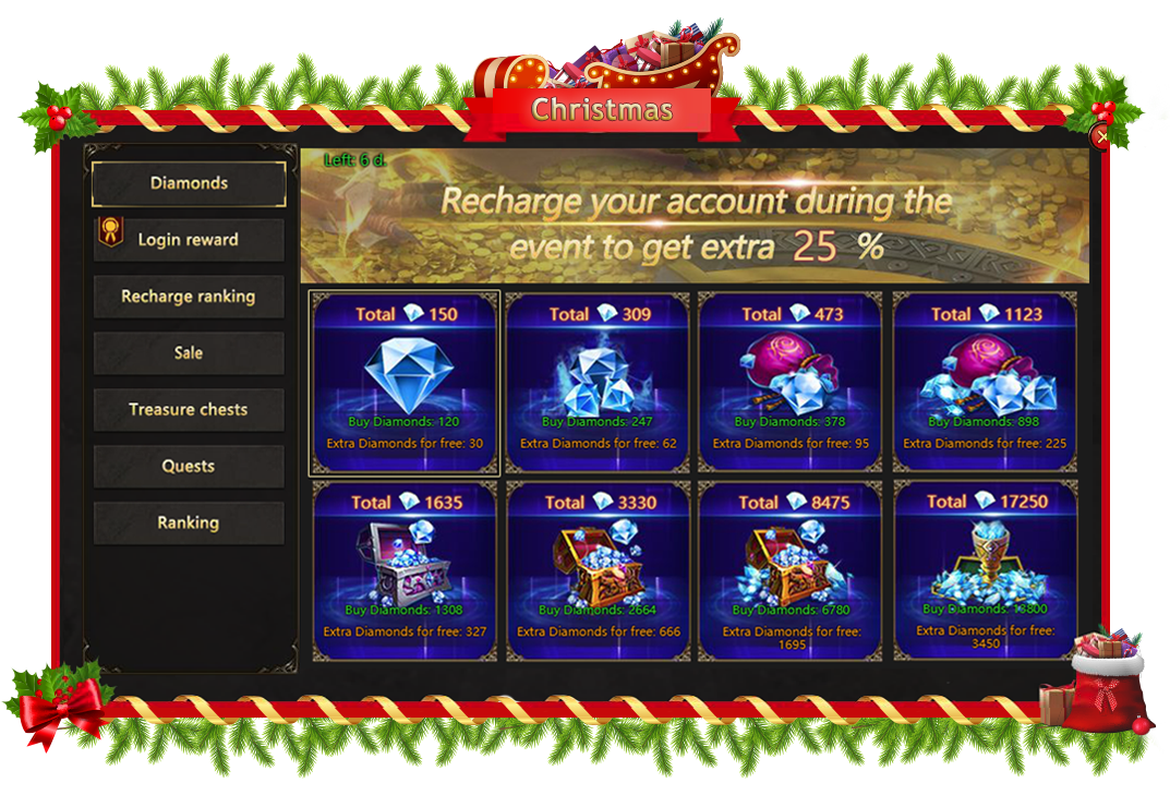 Are all the gifts under the Christmas tree yet, heroes? Is that tree decorated as well as your home? Have you prepared Christmas menu and just waiting for the greatest holiday of the year to come? The time is coming, and Rise of Angels is fully in Christmas mood: a bunch of exciting events and awesome rewards will be waiting from 6am December 25 to 6am January 1. Don't miss the party!