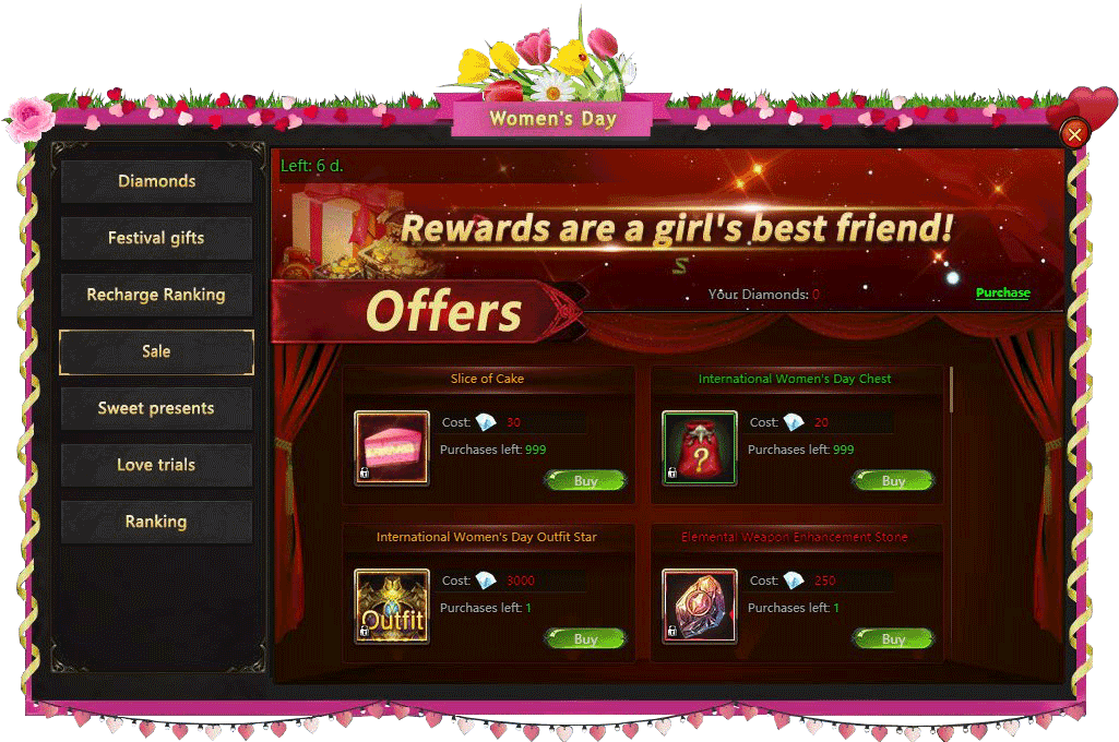 It is time to announce the most anticipated spring Event - International Women's Day holiday events will be awaiting you from 6am March 5 to 6am March 12. Awesome prizes, fun activities and lots of friends!