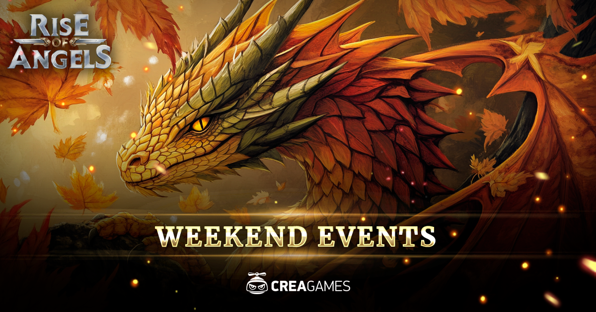 In autumn, the leaves of the trees resemble gold. And who loves gold more than anything else in the world? That's right — dragons! These powerful flying lizards will literallt anything to seize any treasures. So it's no surprise that in autumn, dragons watch the falling leaves for hours. Don't disturb them; it’s better to tiptoe away. Now, let’s talk about the Weekend Events in Rise of Angels!
