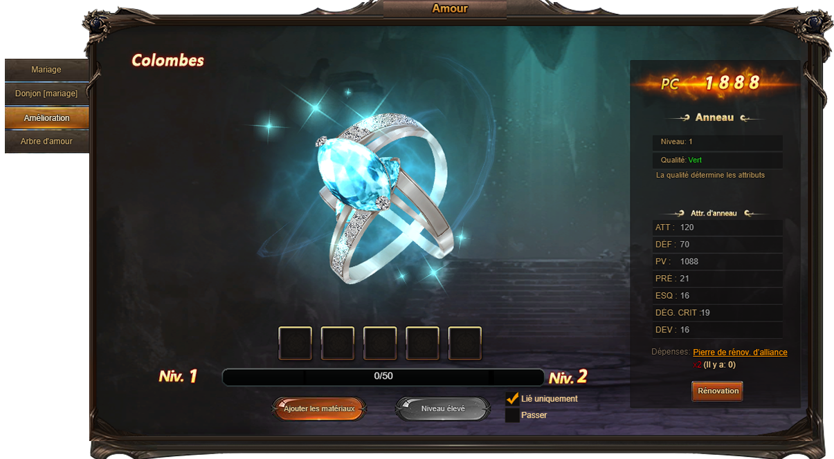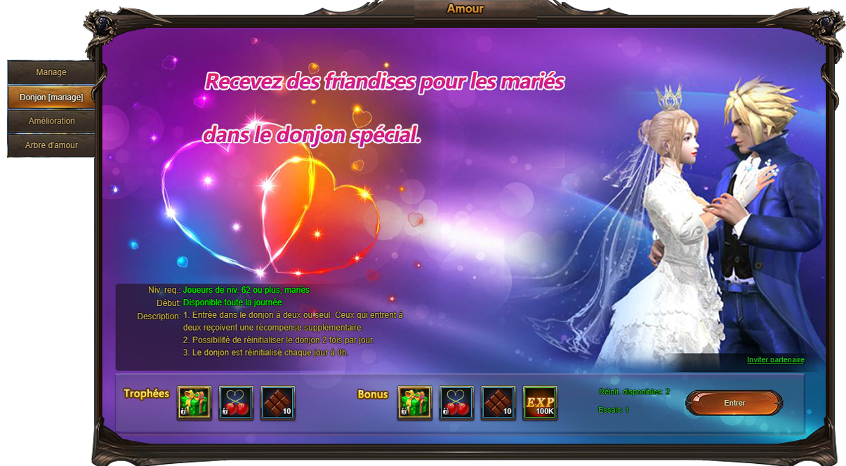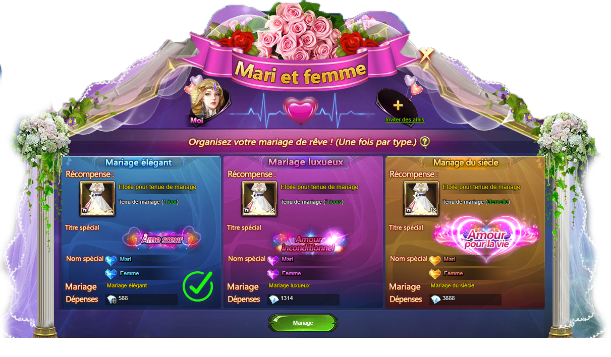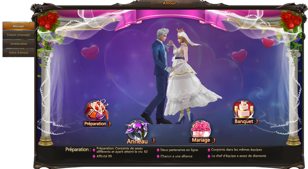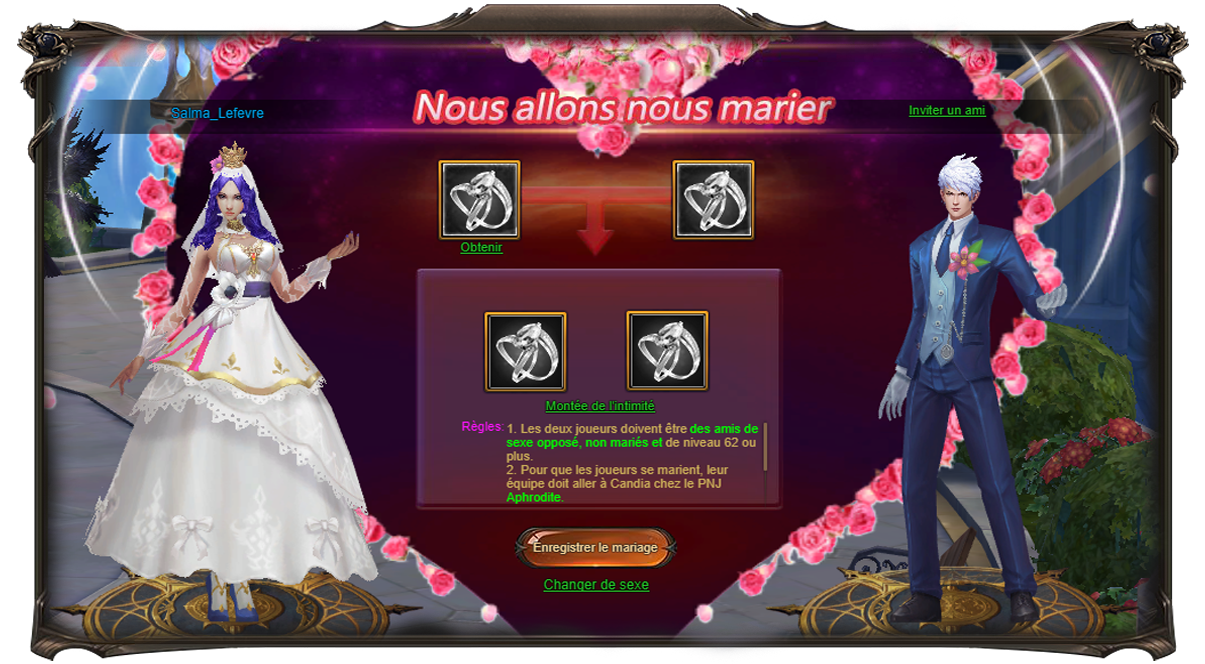 Les héros peuvent se marier à partir du niveau 62.