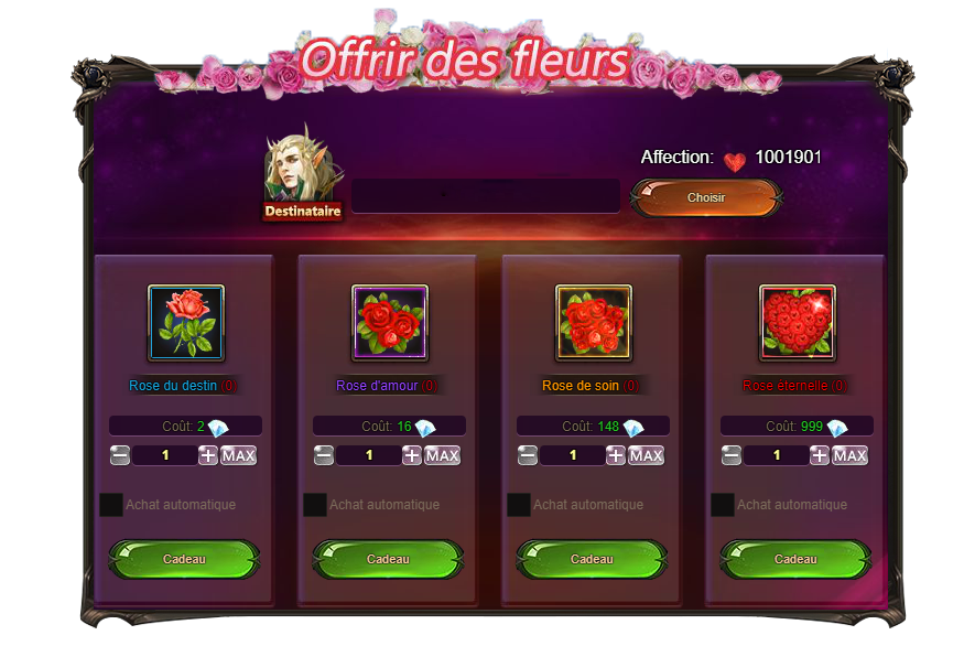 Des points de relations sont gagné en offrirant des roses au leur cherie.