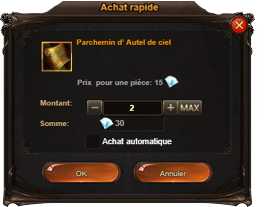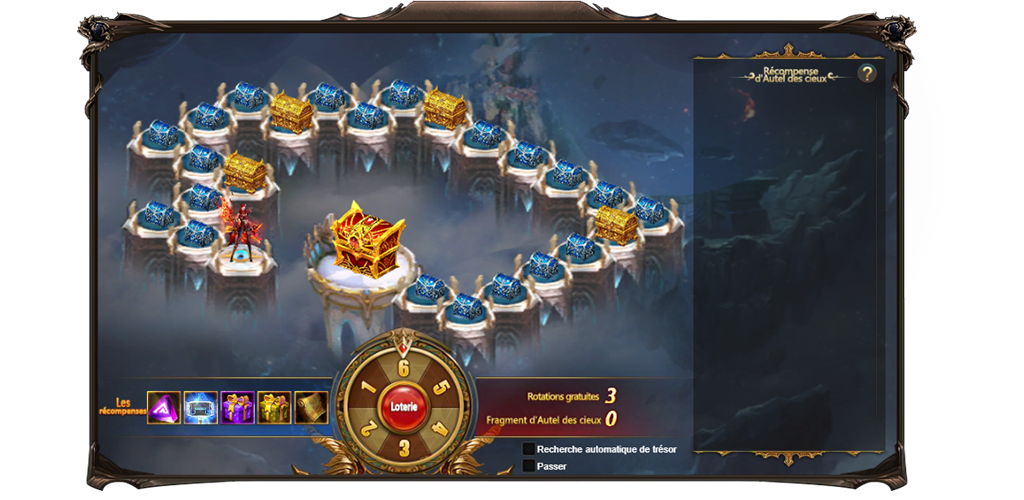 Chaque jour, 3 tentatives de défilement gratuites sont disponibles. Pour les rotations supplémentaires vous devez obtenir des « Parchemins de l'autel du ciel ».