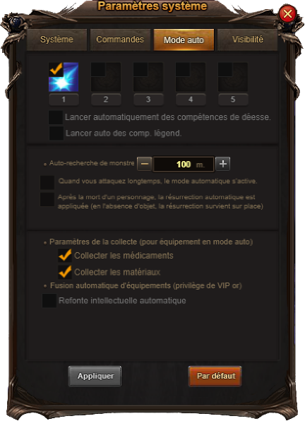 Les paramètres de mode automatique vous aide a changer tel ou tel aspects de jeu "autopilote"