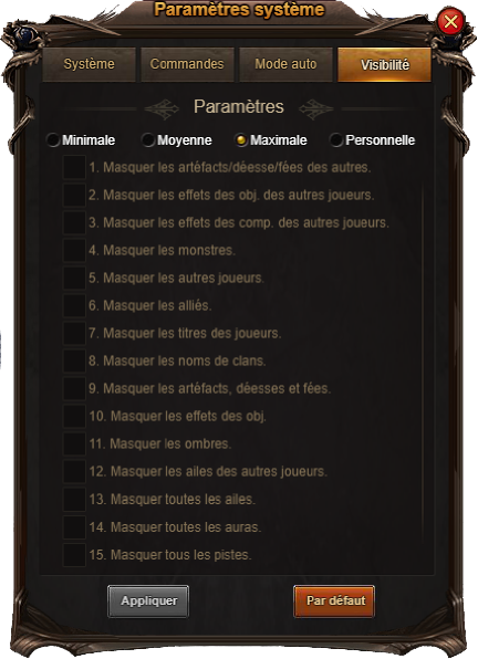 Vous pouvez changer les paramètres de visibilité pour améliorer la performance generale.