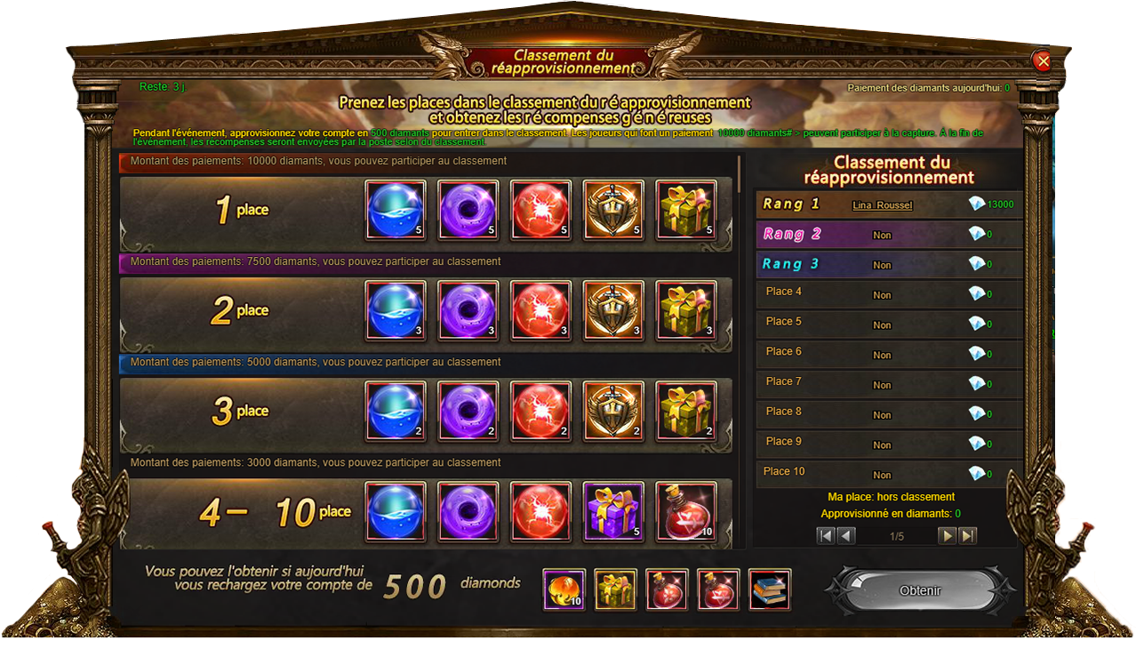 Classement de réapprovisionnement - des cristals d'Hadès, d'Athena et de Zeus seront disponibles à vous. Renforcez votre équipement pour devenir le plus fort !