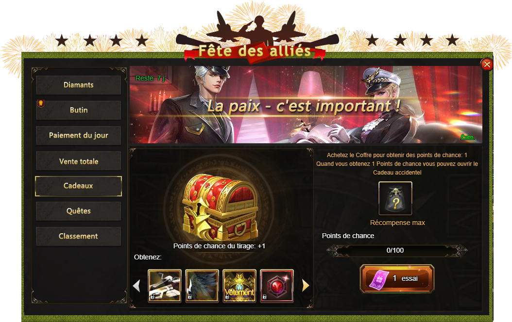 Des cadeaux merveilleux vous attendent. Plus de connexions par jour, plus des récompenses !