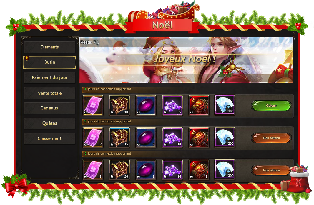 Butin de Noël - plus de connexion par jour - plus des récompenses.