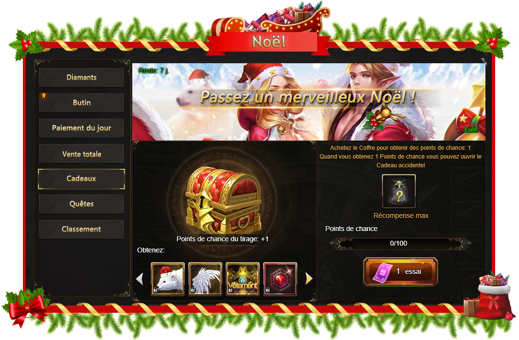 Butin de Noël - plus de connexion par jour - plus des récompenses.