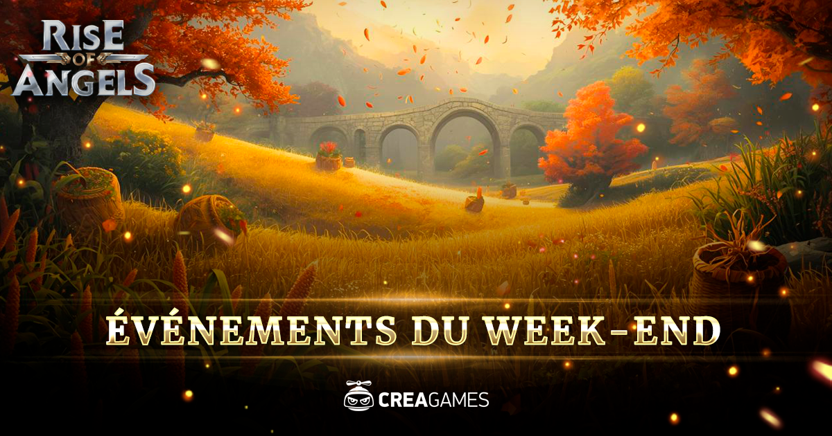 Des champs dorés, des arbres couleur cuivre, un ciel gris traversé de rares traits de bleu et de blanc… L’automne est décidément une magnifique saison ! Mais la récolte n’attend personne. Nous avons déjà parlé des escargots aidants, mais ce n’est pas la seule façon d’alléger ce travail exigeant. De nombreuses fermes font appel aux sorciers. Oui, vous avez bien entendu — la magie a aussi sa place dans l’agriculture. Un petit talisman est placé sous chaque graine. Lorsque la plante grandit et commence à donner des fruits, il suffit d’un souffle d’énergie magique sur le talisman. Et aussitôt, toutes les pommes, poires, citrouilles ou même les baies tombent doucement au sol — ou sur un tissu soigneusement étendu. Pratique ? Le mot est faible ! Mais aussi, pas vraiment bon marché… Et maintenant, tournons-nous vers les du week-end à venir dans Rise of Angels !