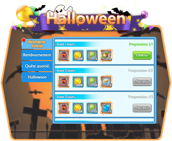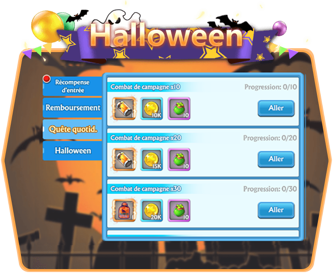 Connectez-vous, obtenez des récompenses de connexion et de réapprovisionnement, terminez des quêtes quotidiennes et amusez-vous pendant la semaine la plus effrayante de l'année !