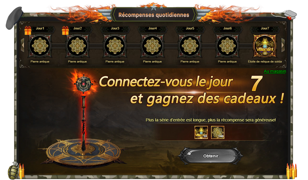 Récompenses quotidiennes - connectez-vous pendant un événement et gagnez des pièces antiques...