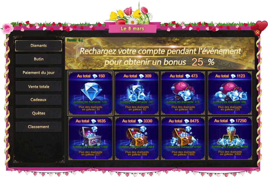Diamants - 25% de diamants en plus au prix habituel!