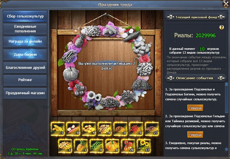 Каждый игрок сможет принять участие в сборе урожая. Соберите весь урожай и примите участие в розыгрыше призового фонда!