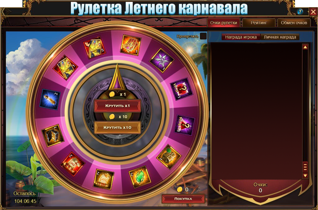 Полученные в рулетке очки можно использовать для получения целого спектра удивительных наград! Например, с их помощью вы можете приобрести тематические предметы: особый Титул Летнее Настроение[Аватар] Поросенок и Рамка Летнего Карнавала. Также для обмена доступны очаровательная Фригг, фрагменты артефактов и полезные для любого искателя приключений ресурсы.