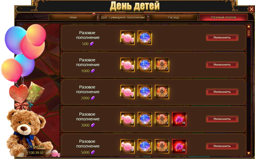 День Детей - Доп. суммарное пополнение
