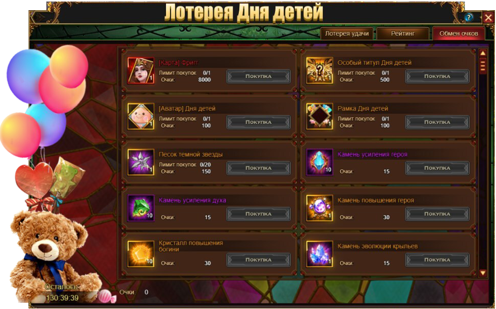 Лотерея Дня Детей - Обмен очков