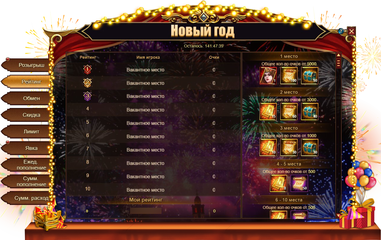За участие в Розыгрыше вы получаете специальные очки, определяющие ваше положение в Рейтинге фестиваля. В зависимости от положения в рейтинге можно получить: Свитки славыФиолетовые свитки опытаОсобые сундуки материалов и даже героя класса UR - обворожительная Фригг