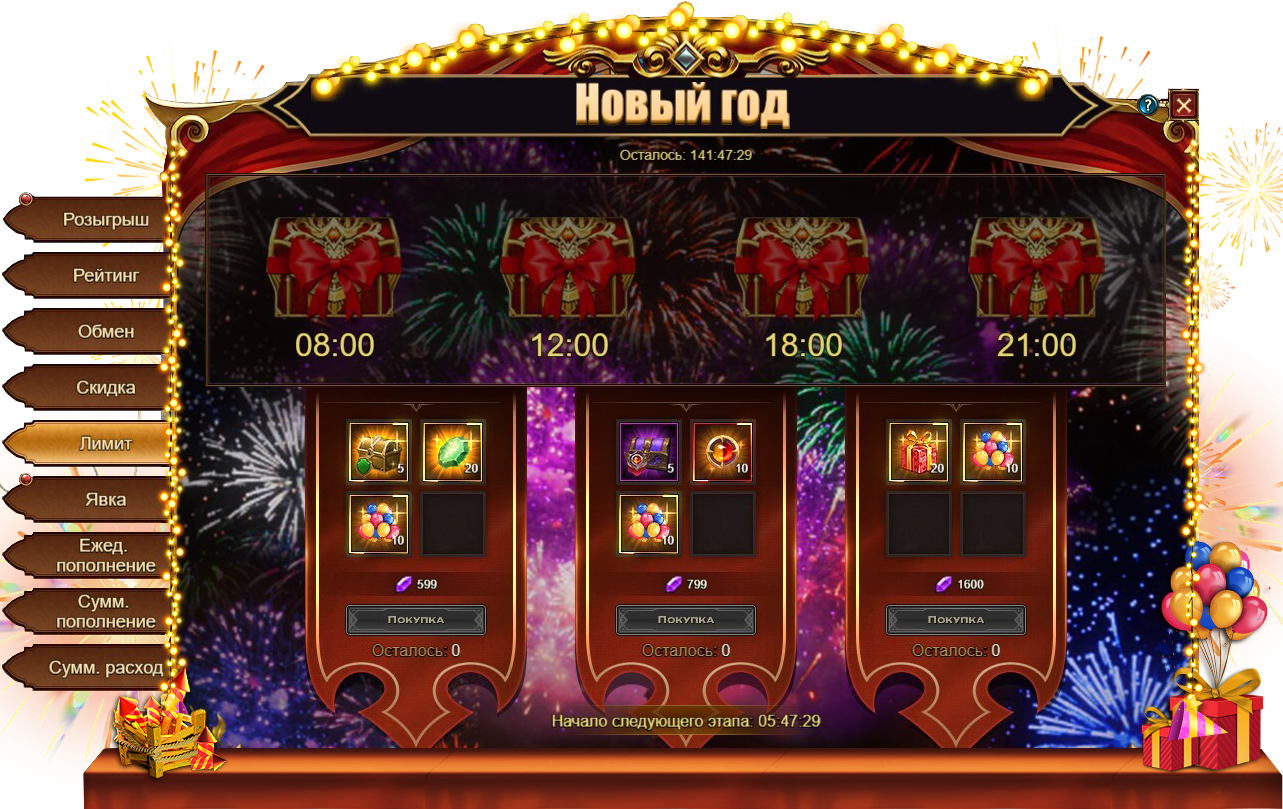 Здесь любопытные искатели приключений могут отыскать временные предложения, доступные в течение ограниченного времени и в ограниченном количестве. Группы товаров доступы с 8:00 до 11:59, с 12:00 до 17:59, с 18:00 до 20:59 и с 21:00 до 7:59. В этот раз вы можете получить в том числе: Сундук талисманов, Берилл, Шарики, Сундук души I, Кристалл души крыльев, Монета фортуны.