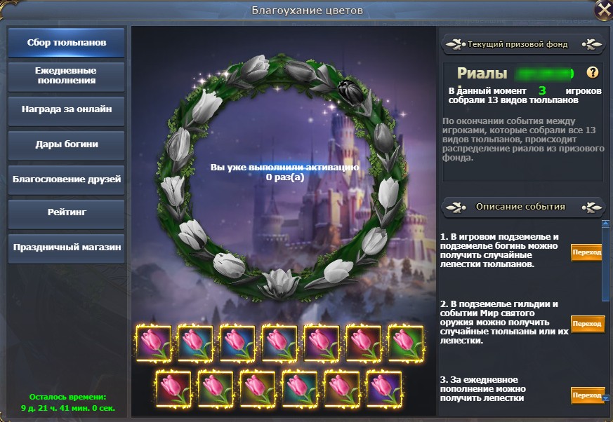 17 марта в игре стартует событие "Благоухание цветов" длительностью 10 дней. Прекрасные тюльпаны создадут праздничное настроение.