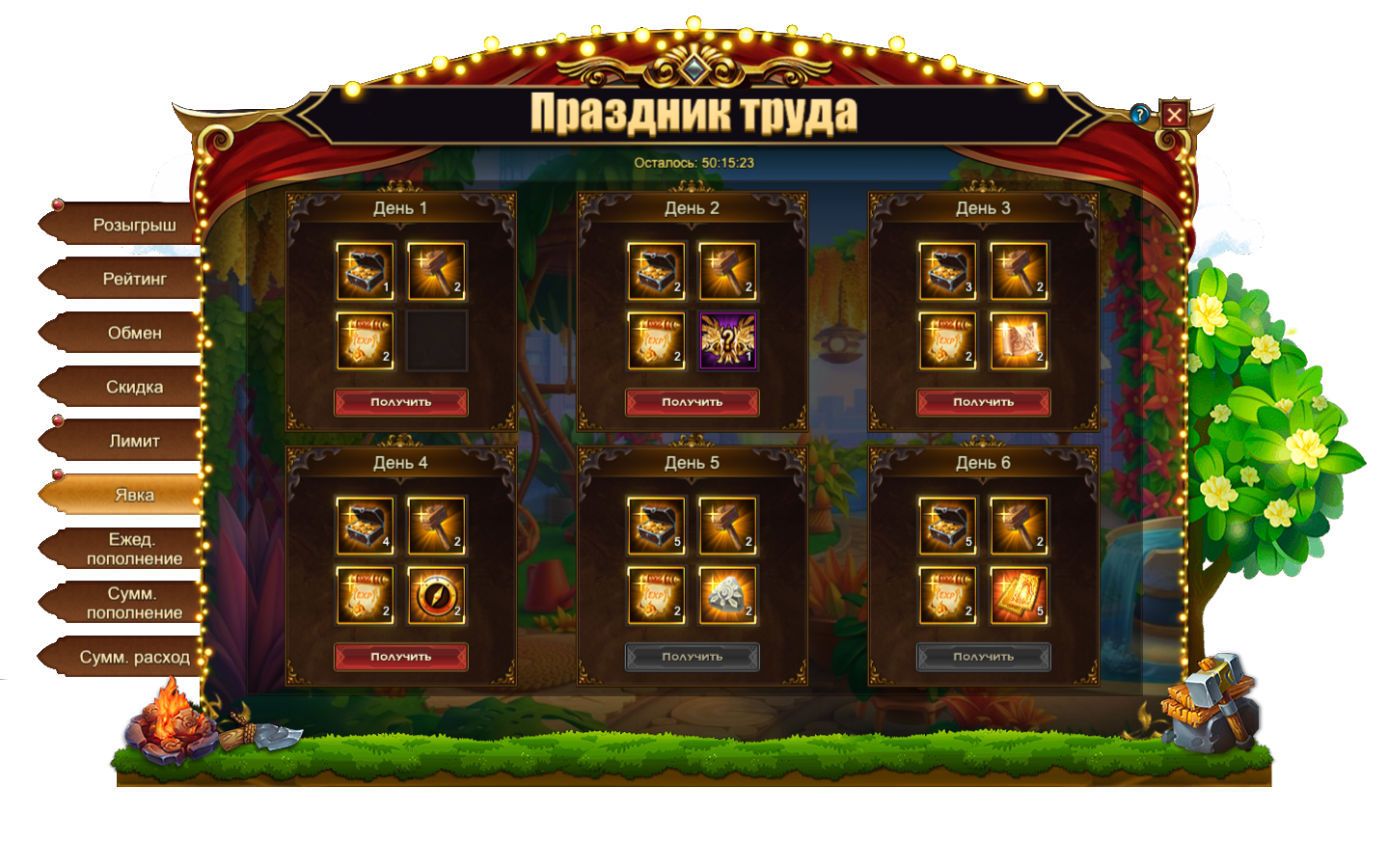 За выполнение ежедневных заданий вы тоже можете получить разнообразные ценности: Малое зелье энергииМолоток, КиянкаОсобый сундук материалов или Свиток славы.