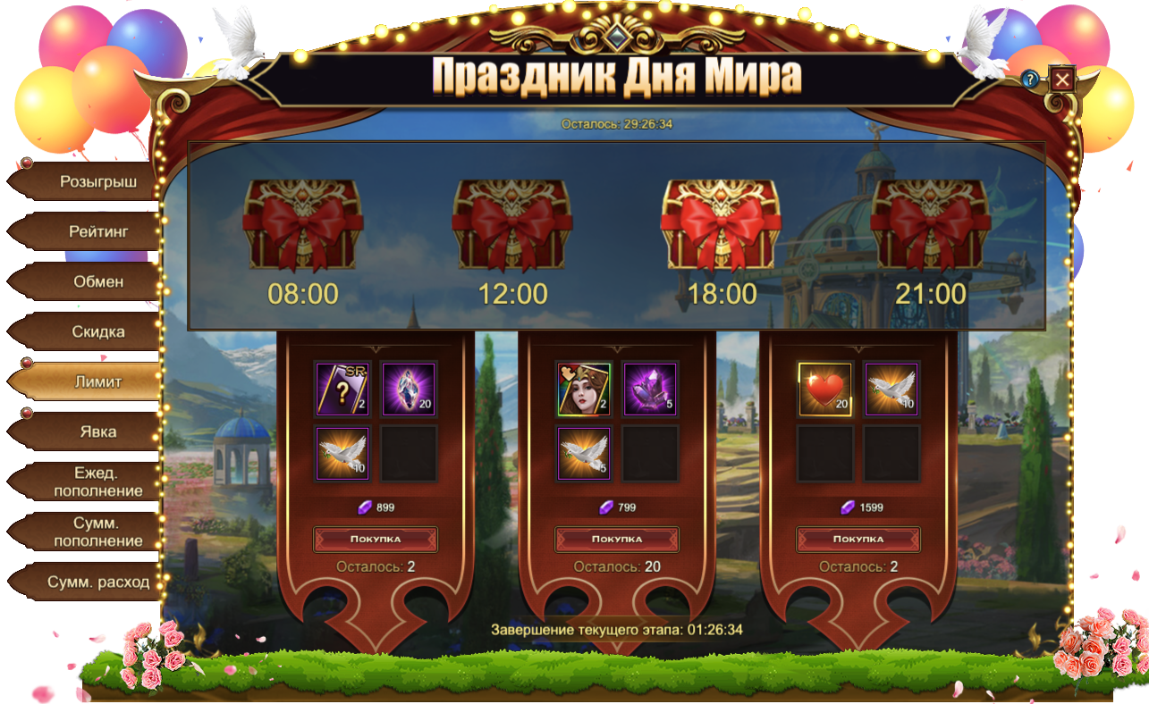 Праздник Дня Мира уже запущен в Eternal Fury Reborn и продлится ровно 6 дней вплоть до 26 июля. Присоединяйтесь к празднованию и отлично проведите время со своими друзьями и другими героями!