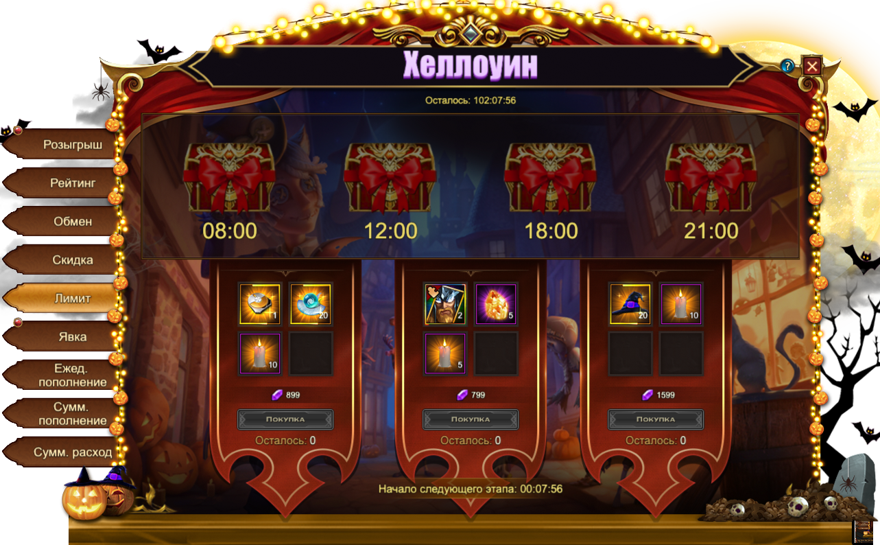Обратите внимание, для активации скидки необходимо выполнить условие из первого столбца. Например, на скриншоте ниже, для приобретения со скидкой набора из Легендарного Эльфа и 10 Свечей необходимо пополнить счет на 1000.