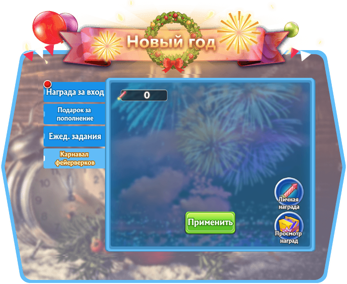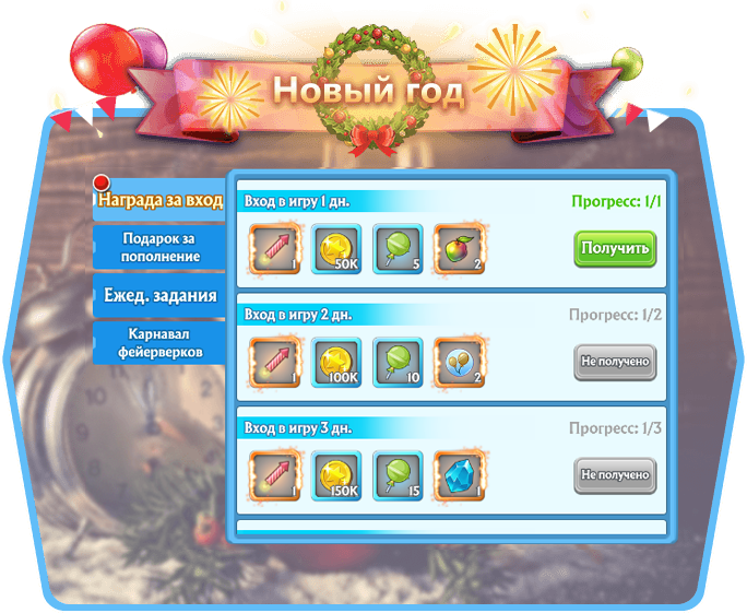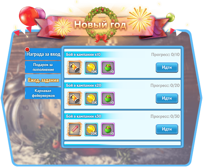 Сегодня, 29.12.2023, в 00:00 (по МСК) начались новогодние события! Мероприятия продлится до 23:59 (по МСК) 05.12.2024 г.