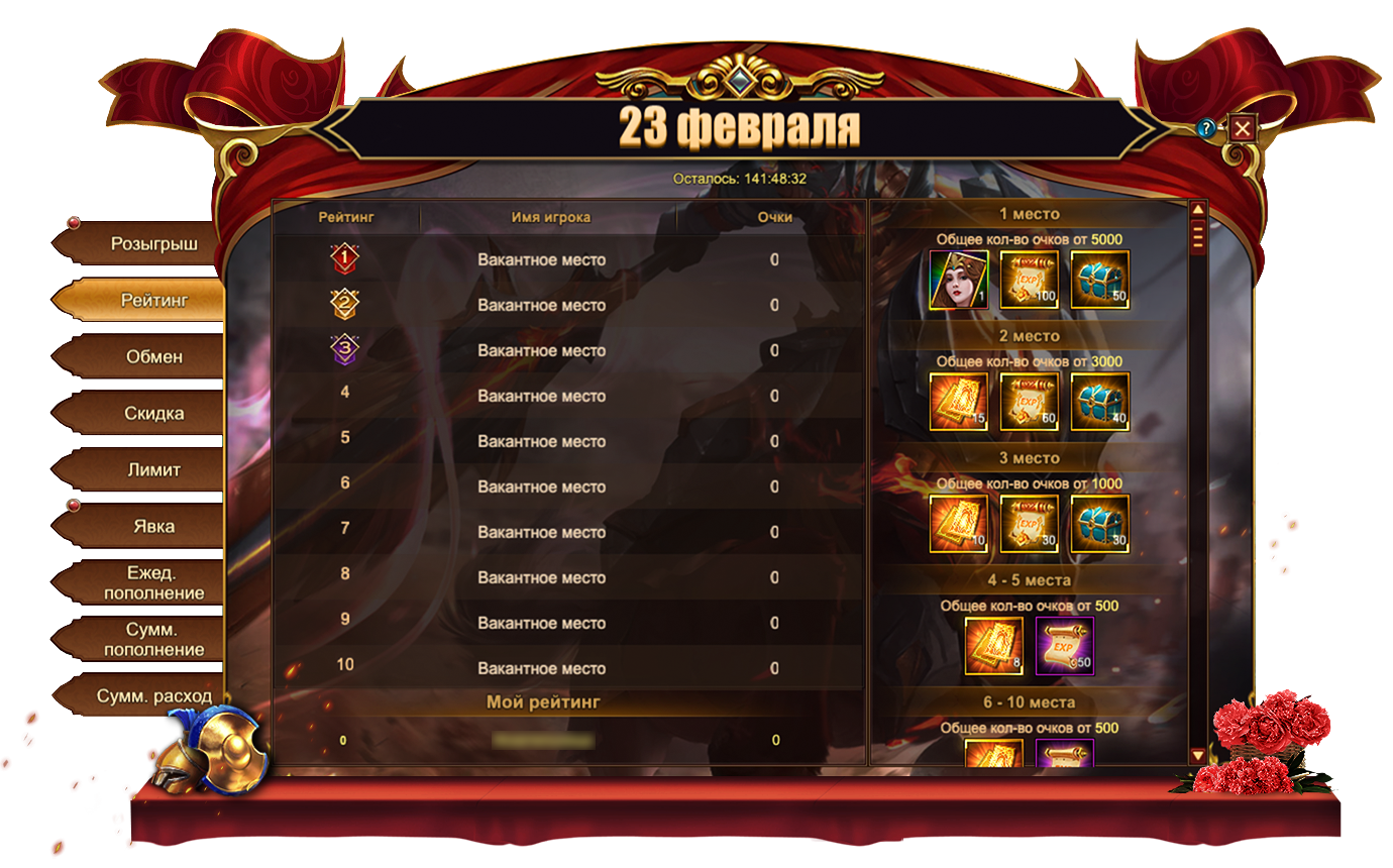 За участие в Розыгрыше вы получаете специальные очки, определяющие ваше положение в Рейтинге фестиваля. В зависимости от положения в рейтинге можно получить: Свитки славыОранжевые свитки опытаОсобые сундуки материаловФиолетовые свитки опыта и даже героя класса UR - изумительную Фригг