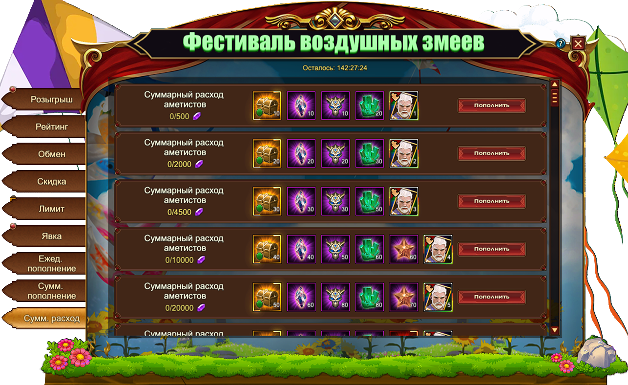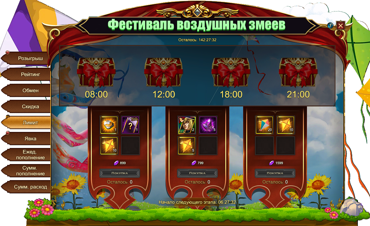 За участие в розыгрыше определенное количество раз вы также можете получить: Камень усиления герояЗолотой воздушный змей и Камень повышения героя.