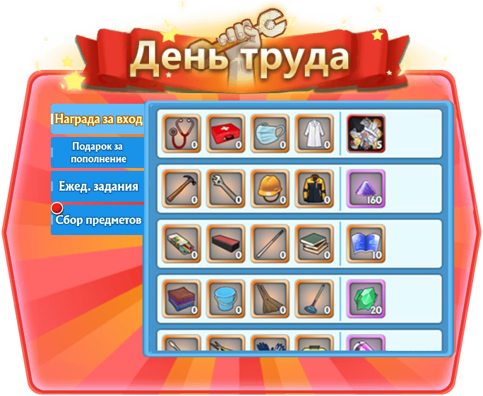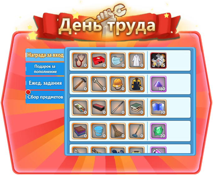 Сбор предметов  - собирайте наборы врачей, строителей и других профессий, обменивайте их на ценные подарки!