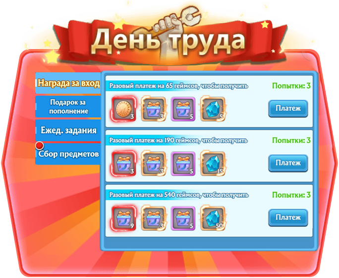 Подарок за пополнение - награды за разовое пополнение игрового баланса.