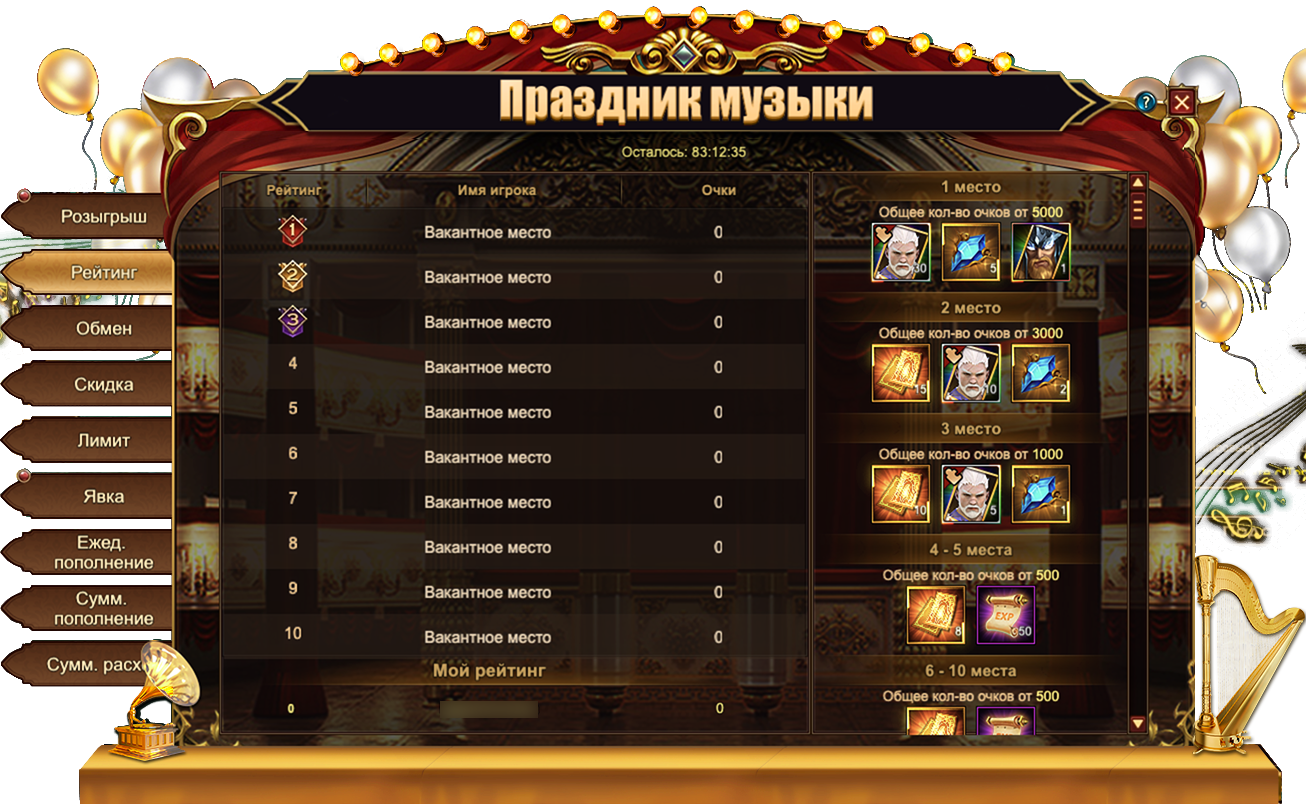 За участие в Розыгрыше вы получаете специальные очки, определяющие ваше положение в Рейтинге фестиваля. В зависимости от положения в рейтинге можно получить: Свитки славыСущность артефакта[Фрагмент карты] ТюрФиолетовые свитки опыта и даже героя класса UR - всемогущего Тора