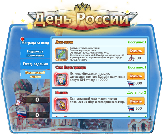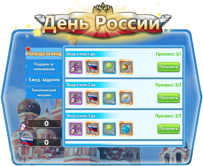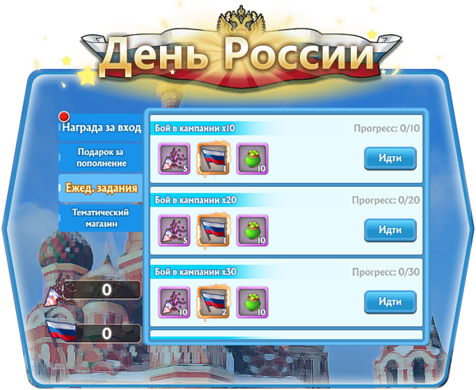 Ежедневные задания - специальные задания на День России с приятным и полезными призами!