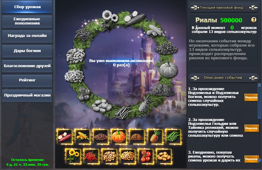 10 октября начнется событие Богатый урожай длительностью 10 дней: