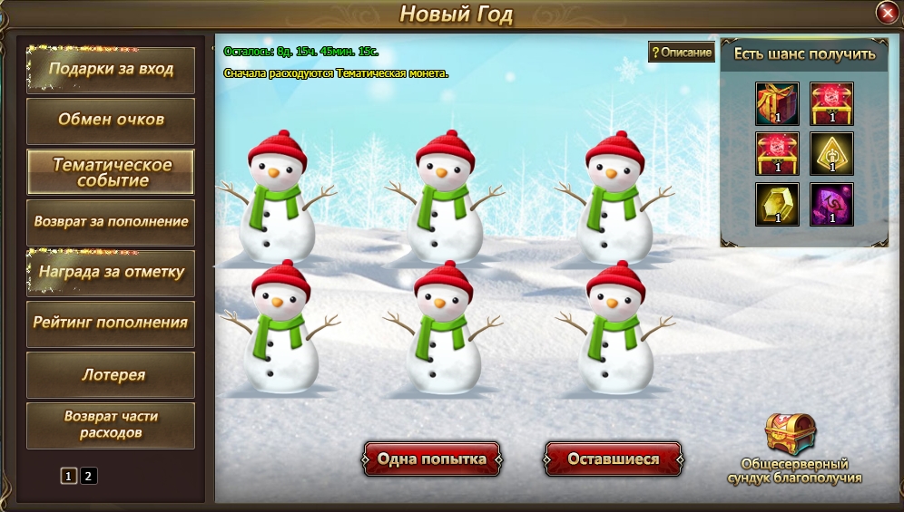 В этой новости мы расскажем о том, какие события ожидают нас уже завтра. Пожалуйста, учтите, что некоторые из ивентов, объявленных на 31 декабря, начнутся только после открытия серверов по завершении тех. работ. Пополнения, совершенные 31 декабря ДО технических работ, могут быть НЕ УЧТЕНЫ в игровых событиях, которые стартуют после техработ.