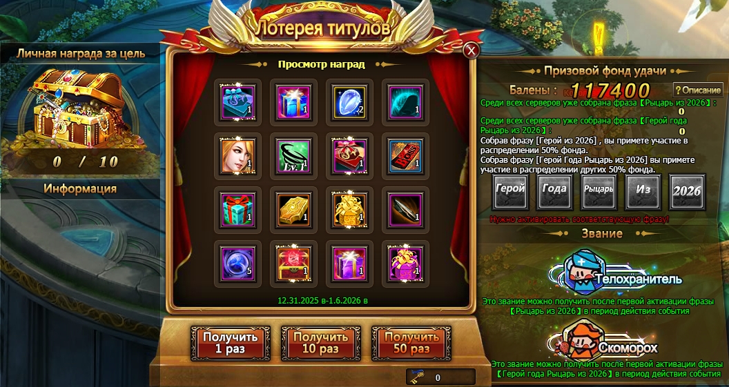 3.    С 31 декабря по 6 января участвуйте в Лотерее титулов, получайте уникальные награды и щедрый возврат баленами.