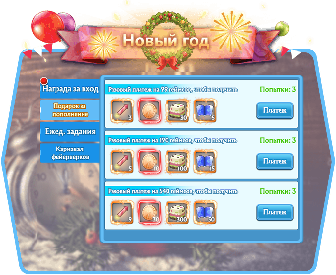Новогодние события уже начались и продлятся до 23:59 (по МСК) 02.01.2025.