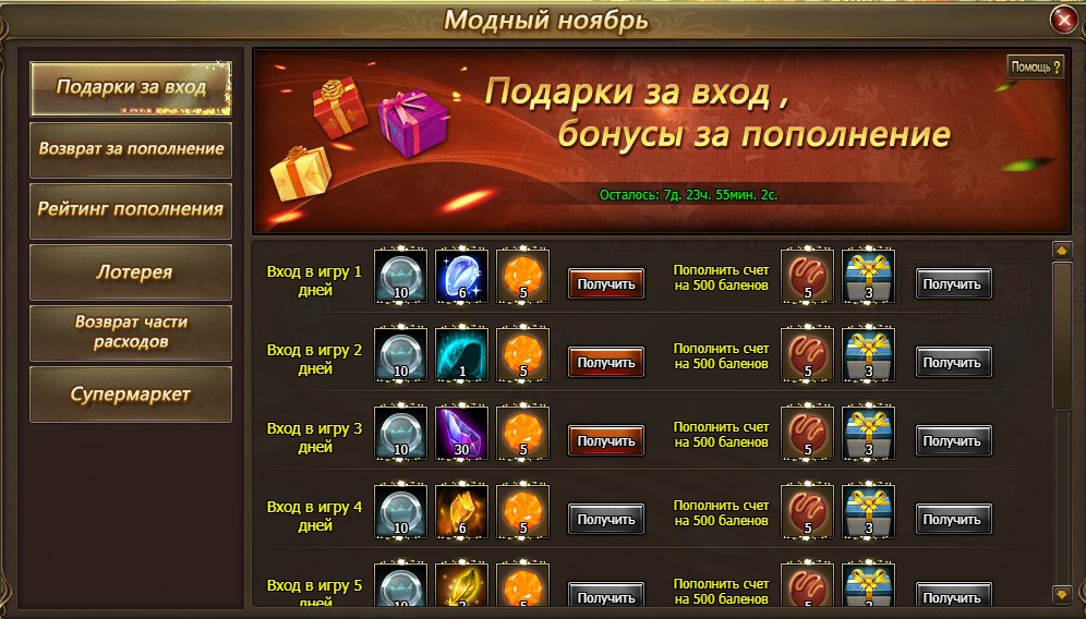 15.    С 16 по 20 ноября открывайте «Сундуки сокровищ», полученные за пополнение счета от 1000 баленов.