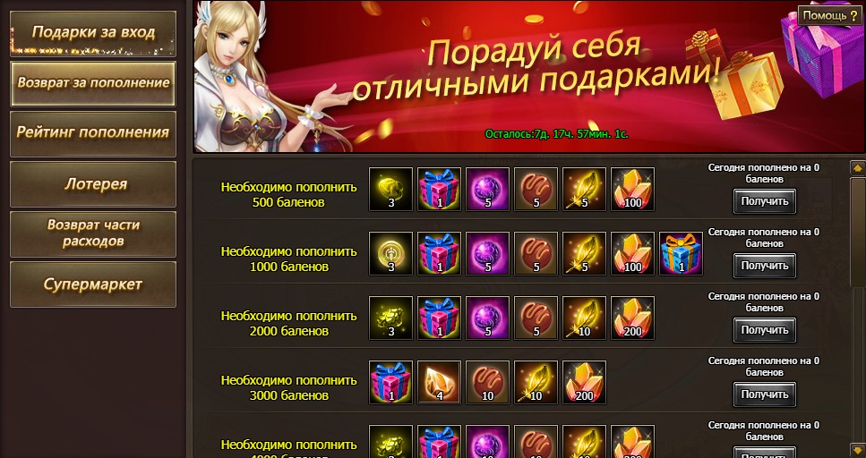 9.    С 9 по 13 декабря открывайте «Сундук сокровищ» и забирайте подарки за пополнение счета от 1000 баленов.